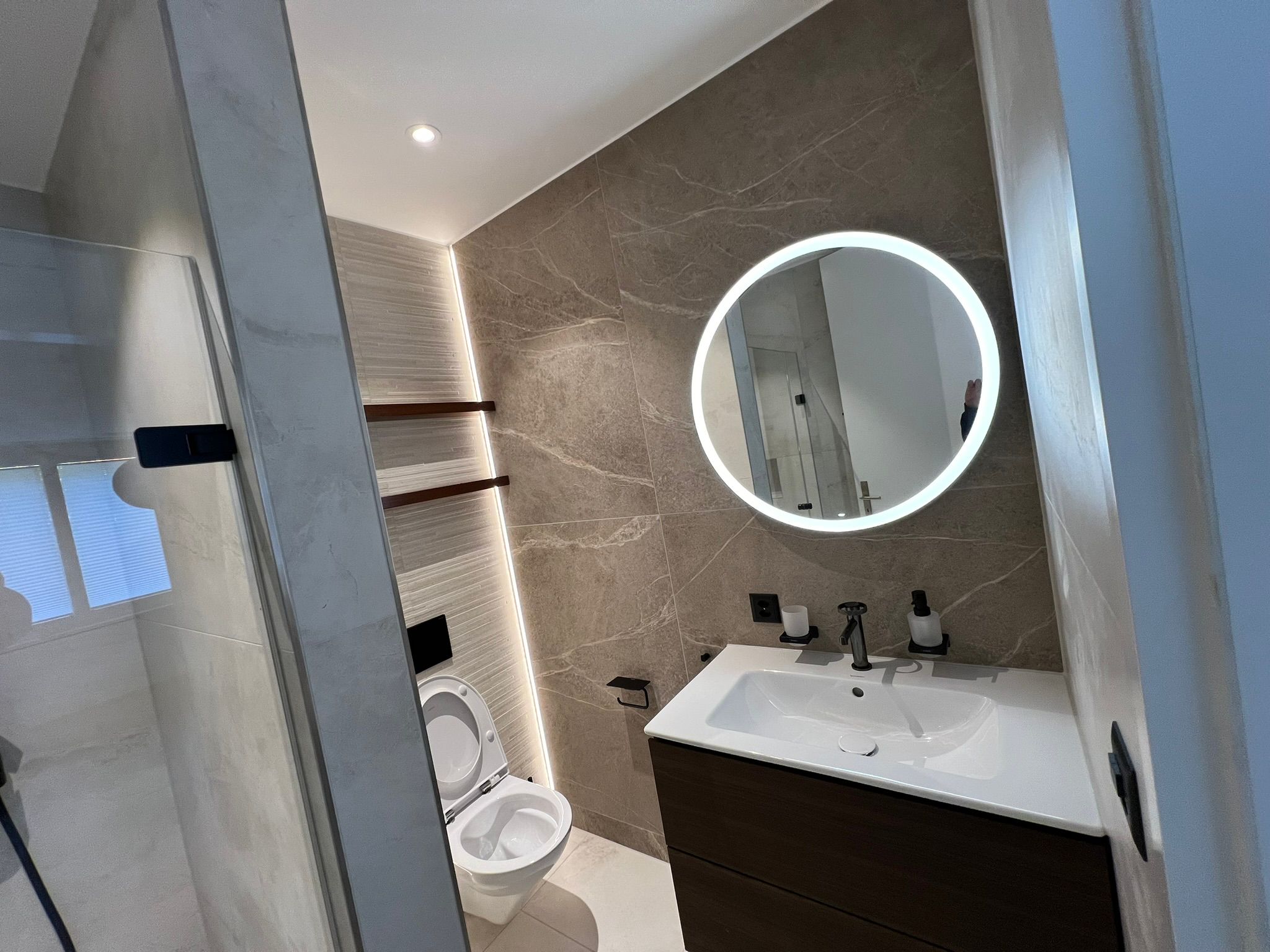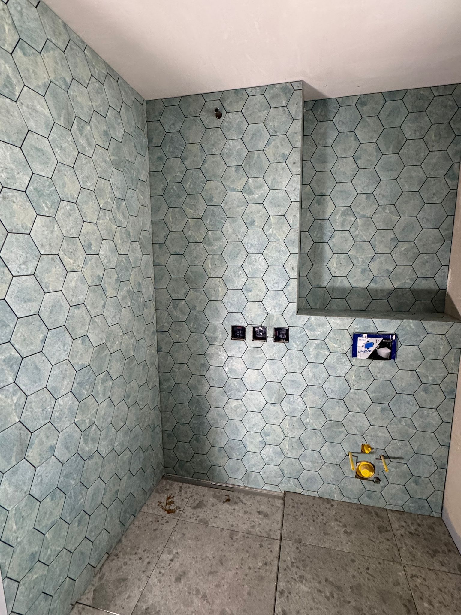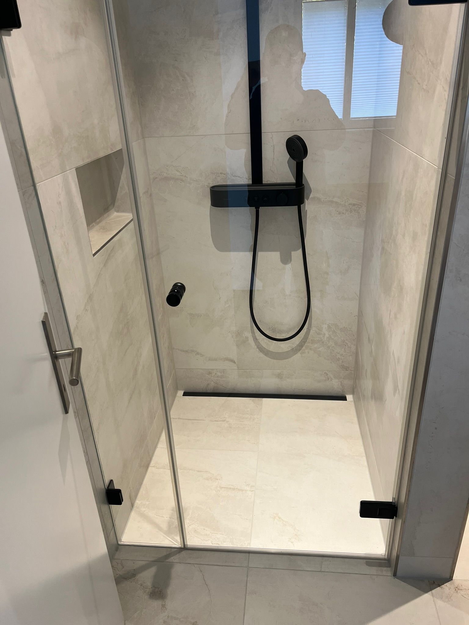Moderne und wasserdichte Plattenlösungen für Badezimmer und Walk-in-Duschen – sauber ausgeführt und perfekt abgestimmt.